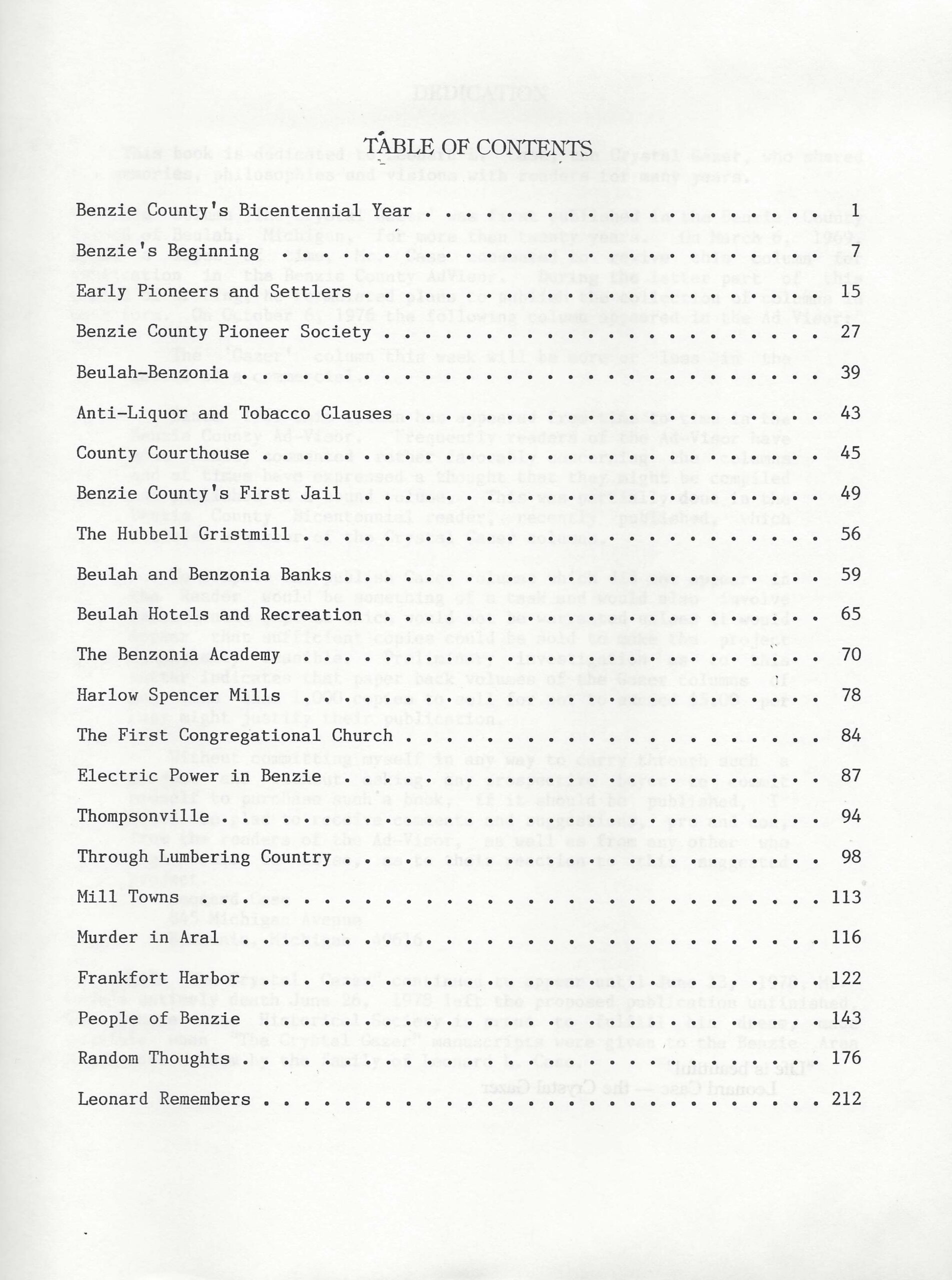 Leonard Case’s column “The Crystal Gazer” was published in the Benzie County Advisor for more than 20 years. During this time, he planned to publish the collection of columns in book form.