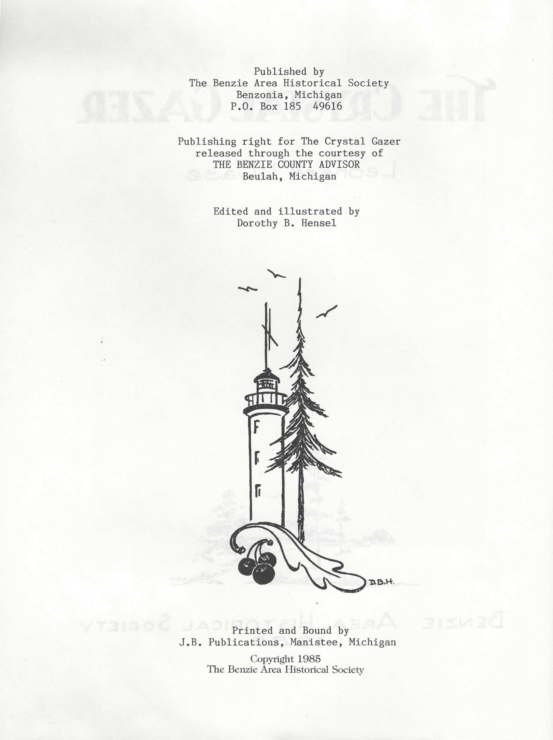 Published by the Benzie Area Historical Society – 1985